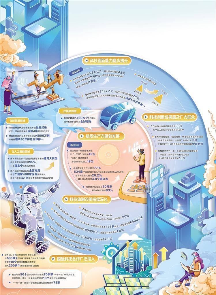 r“十四五”时期,我国科技创新领域交出了一份沉甸甸的成绩单:2024年全社会研发投入突破3.6万亿元,不仅超越欧盟国家平均水平,较2020年更实现48%的大幅增长;研发人员总量稳居全球榜首,高水平国际期刊论文数量与国际专利申请量连续5年领跑世界……这一连串数据背后,深刻诠释了“人才是第一资源”的时代内涵,标注着科技创新与人才培育同频共振的生动实践。